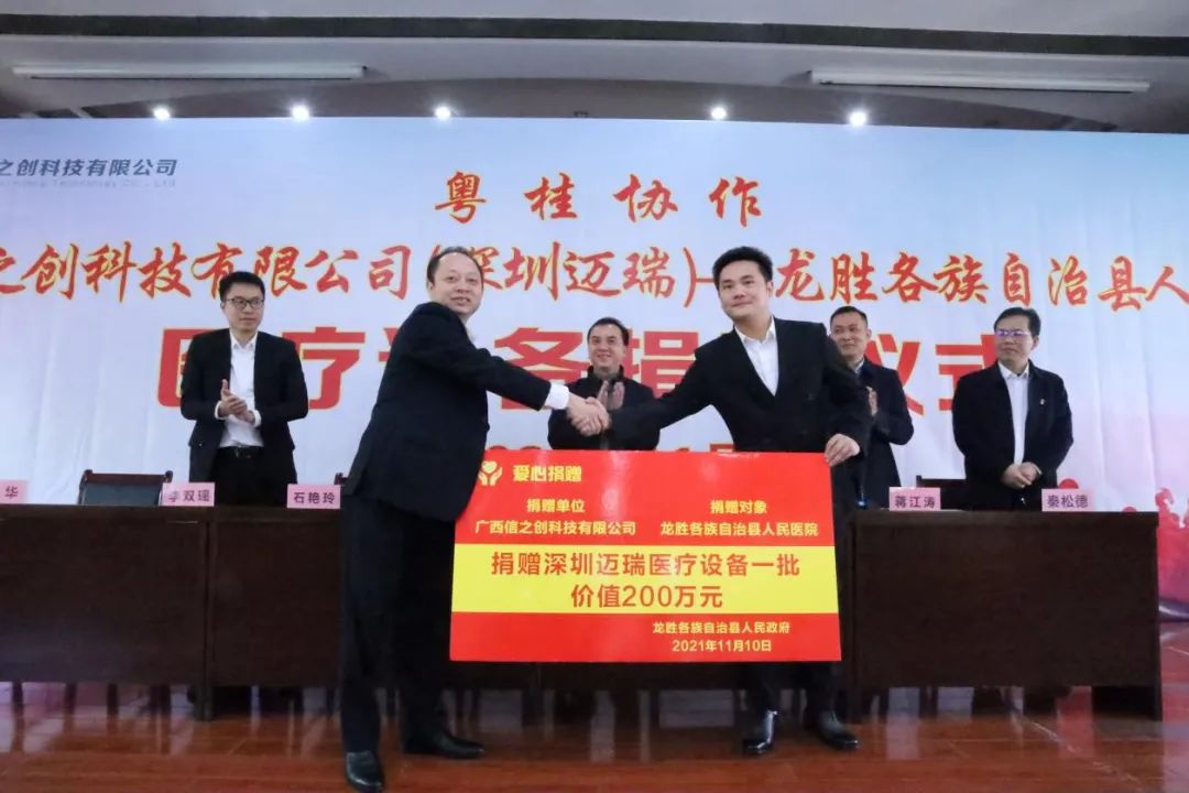 此次捐赠活动是受粤桂协作医疗帮扶的感召,广西信之创科技有限公司为龙胜各族自治县人民医院捐赠了价值200万的高端彩超一台。这惠及千家万户的善举,将为我县完善医疗卫生体系,提高医疗服务质量,改善基层群众就医条件发挥重要作用。
