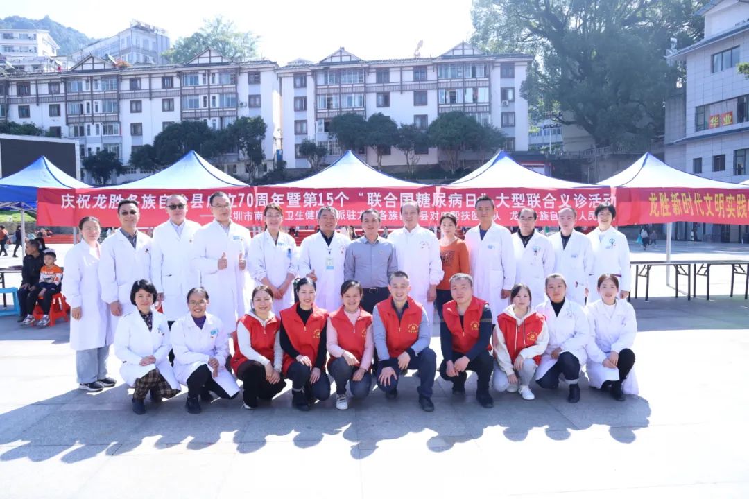 粤桂协作举办义诊,勠力同心谱写新篇。为庆祝龙胜各族自治县成立70周年,并宣传糖尿病防治知识,11月14日,第15个“联合国糖尿病日”上午,深圳市南山区卫健局派驻龙胜各族自治县对口帮扶医疗队与龙胜各族自治县人民医院在县民族中心广场联合举行大型义诊活动,让龙胜县广大人民群众在家门口就可以享受优质医疗服务。