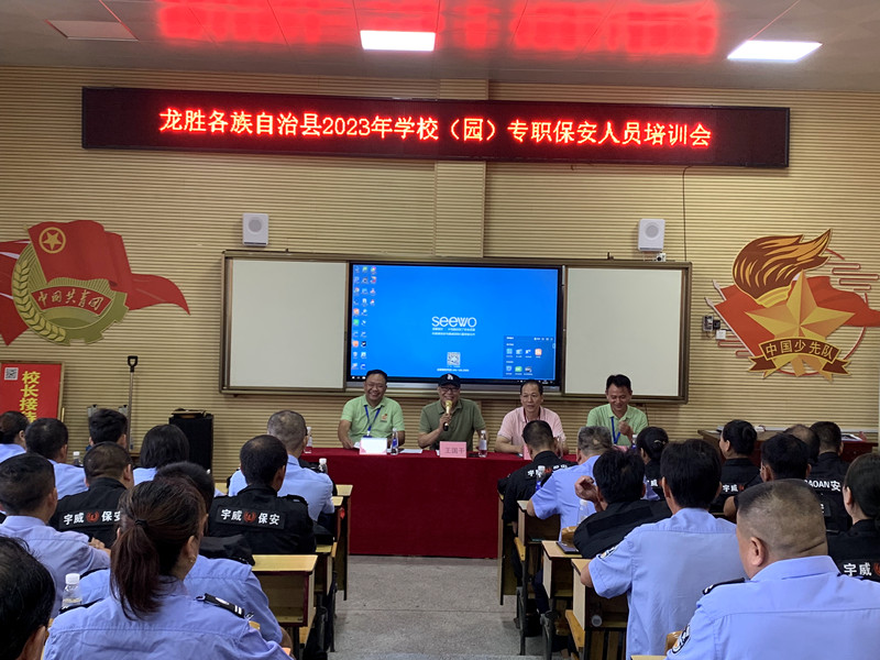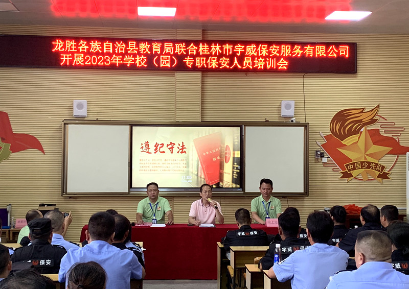 为提升保安人员的业务素养与业务能力,确保安防四个100%动态达标。8月3日,龙胜各族自治县教育局与桂林宇威保安服务有限公司联合开展了本县第二次专职保安培训。