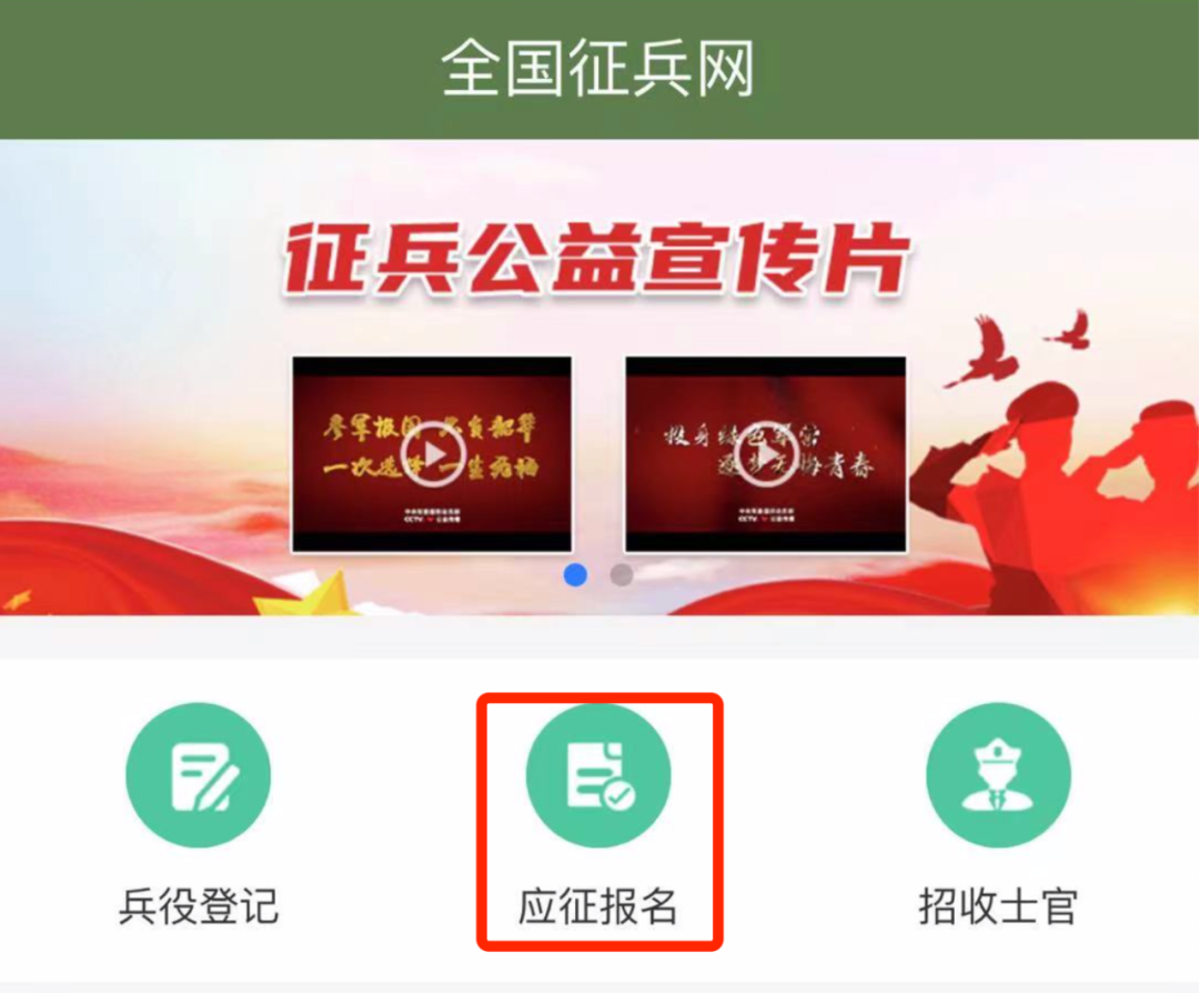 渠道一:关注“央视军事”微信公众号,点击首页菜单“应征入伍”→“全国征兵”→“应征报名”