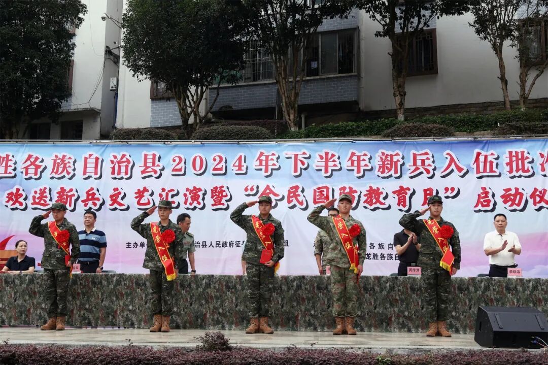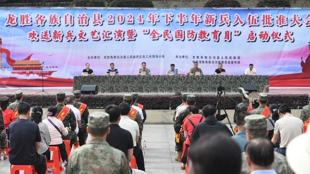 9月是国家设定的全民国防教育月,旨在弘扬爱国主义精神,普及国防教育,增强全民的国防观念。9月14日,龙胜隆重举行2024年下半年新兵入伍批准大会。县长蒙新宇,县委常委、人武部部长魏勇,县委常委、宣传部部长凌熙,县人武部上校政委张朝阳,副县长、公安局局长龚厚清,各乡镇相关负责人参加大会。