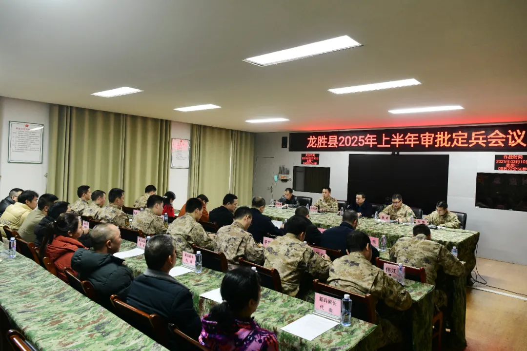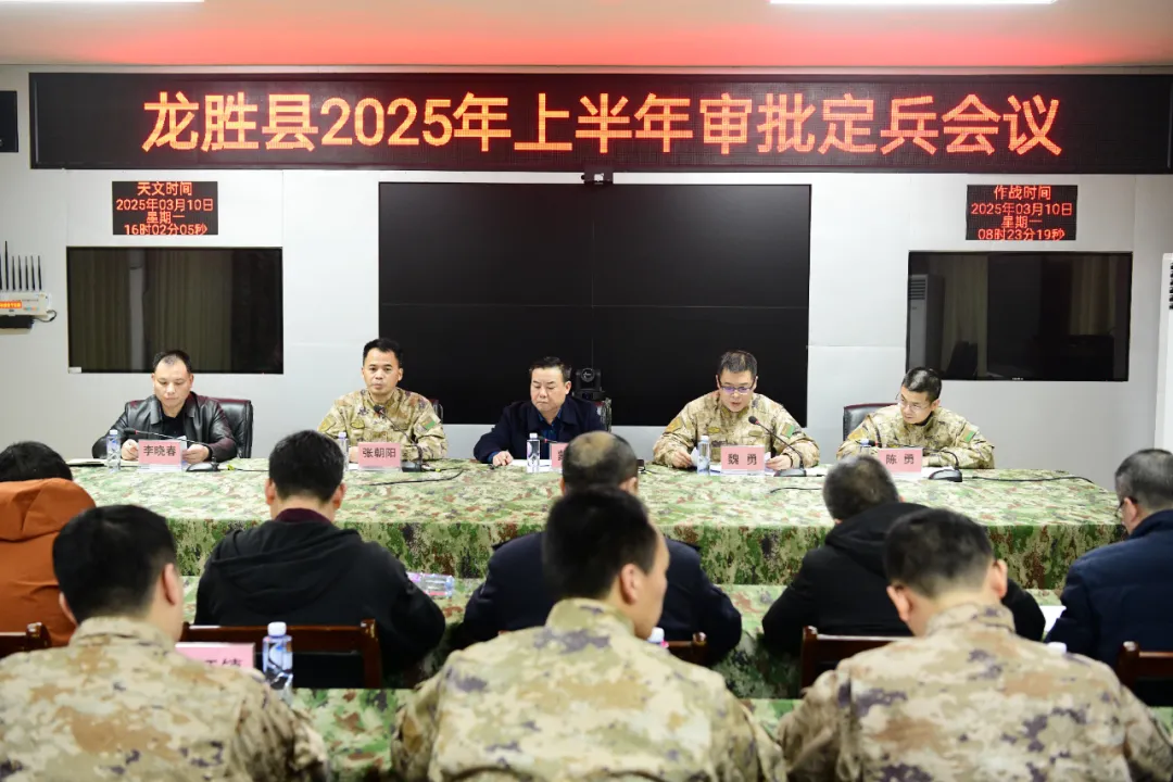 3月10日,龙胜召开2025年上半年审批定兵会议。自治县县长蒙新宇,自治县委常委、人武部部长魏勇,自治县人武部政委张朝阳,自治县征兵办相关人员,各乡(镇)武装部部长及各界廉洁征兵监督员参加会议。