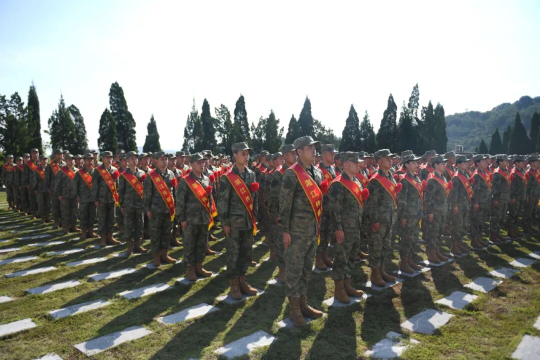 在纪念园凭吊广场,全体新兵整齐列队,面向红军烈士纪念浮雕肃立默哀,深切缅怀在湘江战役中英勇牺牲的红军将士。默哀结束后,全体新兵举起右拳,共同宣誓。他们目光灼灼地望向浮雕,誓言铿锵有力,响彻广场上空,每一个字都饱含着他们投身国防、守护家国的决心。