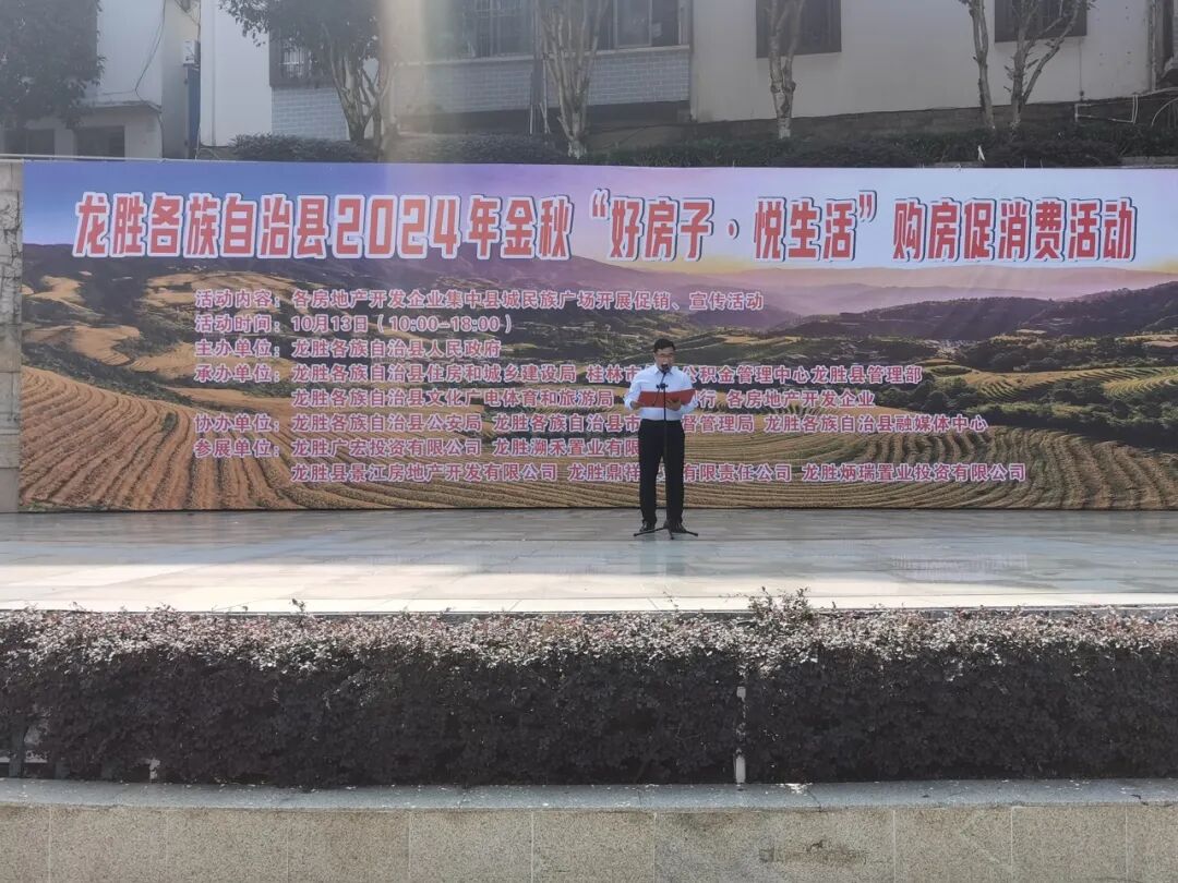 10月13日上午,龙胜各族自治县2024年金秋“好房子·悦生活”购房促消费活动在龙胜县民族广场举办,自治县人民政府副县长杨光伟出席活动并作了现场致辞。活动现场吸引众多市民前来咨询,各房地产开发企业发挥各自优势,通过项目介绍展板、海报、折页等宣传资料,让市民对各个楼盘房源有更直观、更全面的了解。
