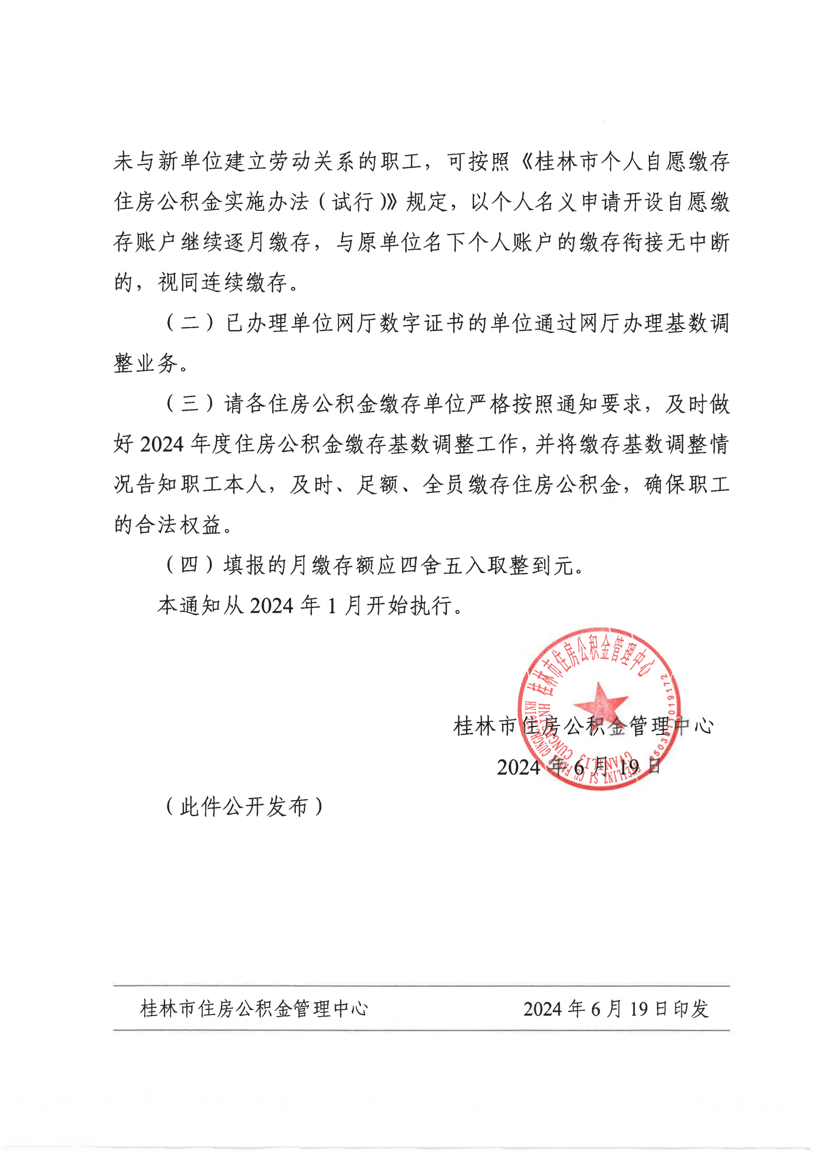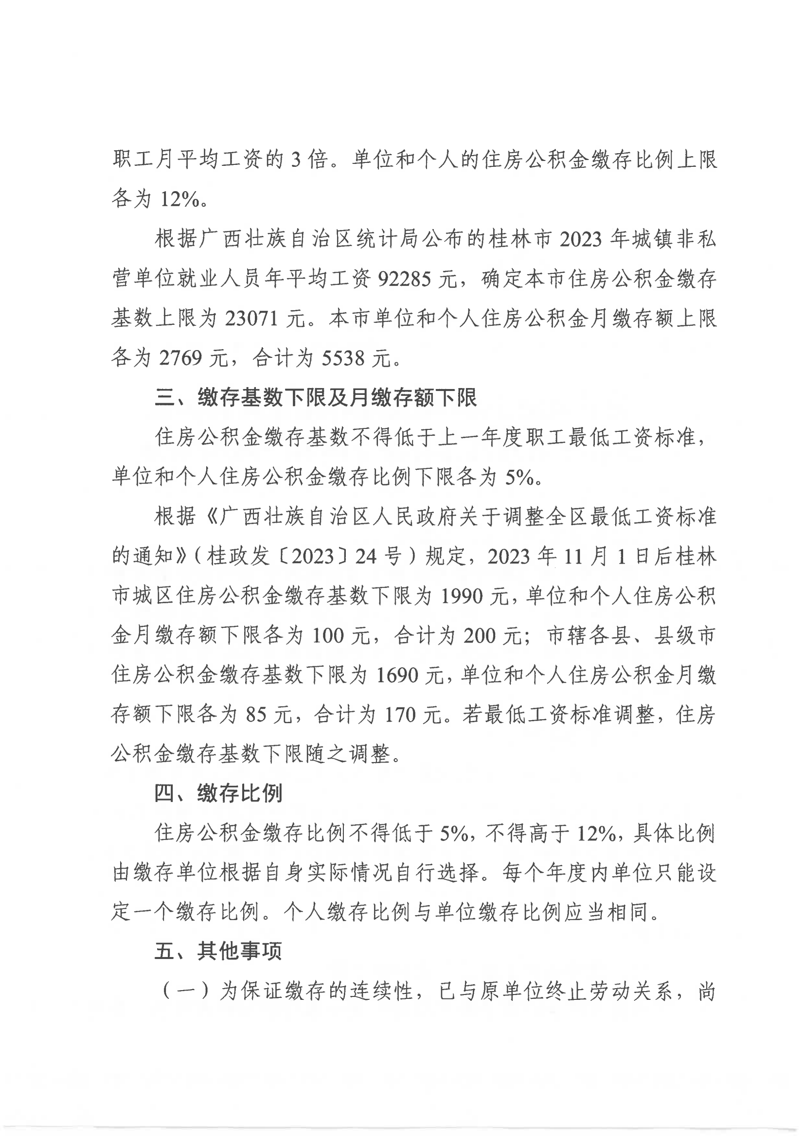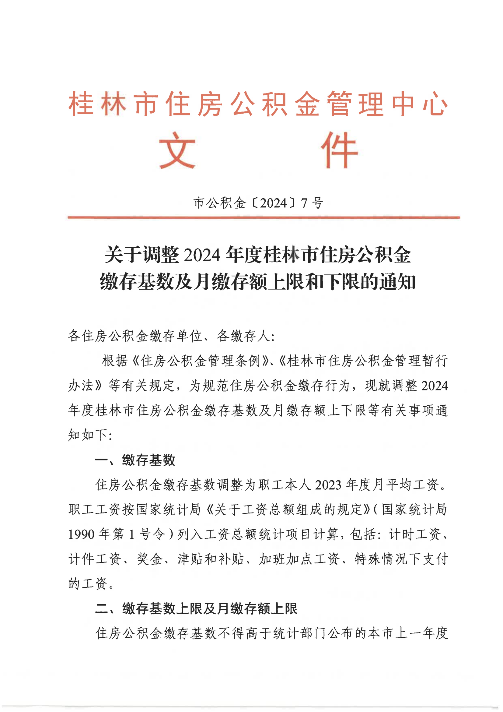 市公积金〔2024〕7号 关于调整2024年度桂林市住房公积金缴存基数及月缴存额上限和下限的通知