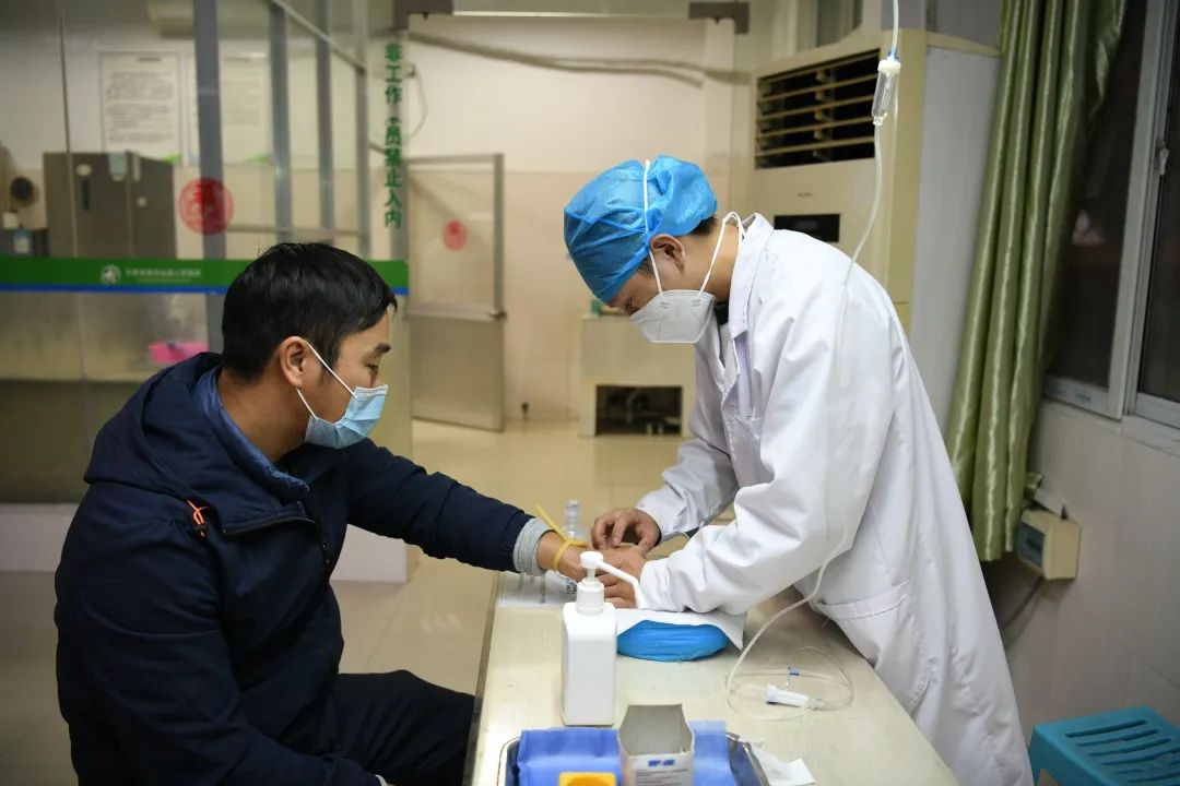近日,记者来到县人民医院,看到很多医护人员带病上岗,为保障患者能顺利就诊,强忍“刀片嗓”等各种不适,为患者挂号、看诊、拿药、输液……