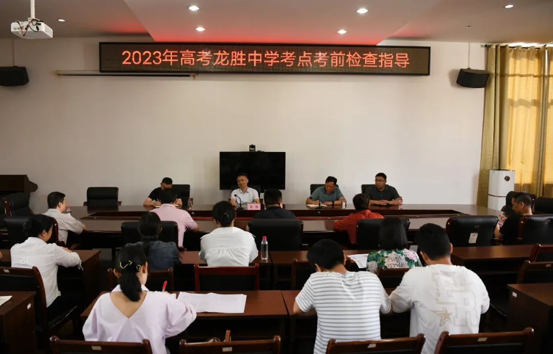 当天下午,雷陈一行来到龙胜中学,通过实地走访、听取相关负责人汇报和召开座谈会的方式,详细了解了考点考生出入、突发事件应急准备、考场布置、后勤服务保障、交通管制、考务工作人员岗前培训以及考点指挥中心、考场监控系统、考试系统设施设备运行等情况。