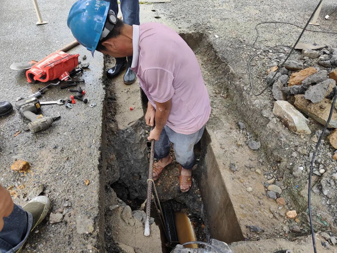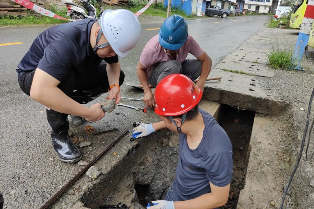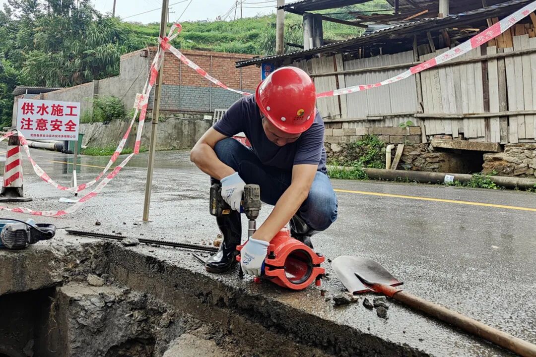 县农投水务有限公司经营管理部主任邓义发表示:“在汛期期间我们公司主要对塌方用户供水管网抢修,及时恢复供水。加大管道巡查,目前正在抢修西路供水主管网,保障县城居民用水水质、水量、水压不受极端恶劣天气影响。”