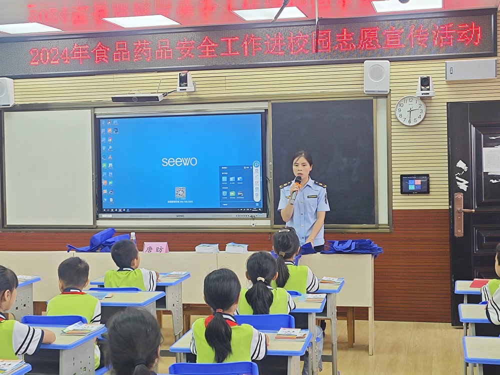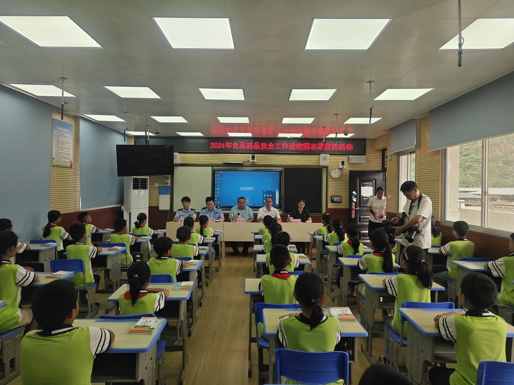 为进一步提升小学生食品安全意识,鼓励小学生积极参与食品安全共建共治,巩固校园食品安全良好态势,促进校园及周边安全稳定工作,关心、关爱、呵护青少年健康成长,强化校园师生安全意识建设,拉紧食品安全底线。2024年9月20日,龙胜各族自治县市场监督管理局联合泗水乡人民政府在泗水乡中心校开展一次以“与法同行 护苗成长”为主题的法治宣传教育进校园活动。