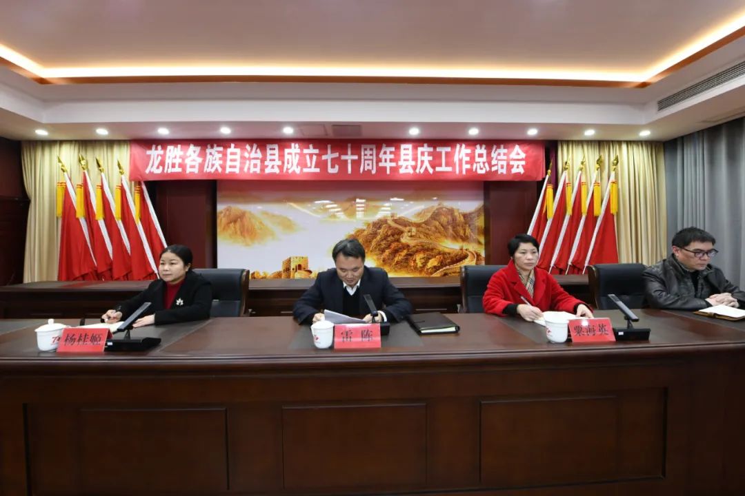 会上,县委书记雷陈作重要讲话。他指出,自治县成立70周年庆祝活动,是党的民族区域自治制度在基层的丰硕成果和龙胜70年辉煌成就的一次成功展示,是鼓舞人心、凝聚力量、促进团结的一次盛会。县庆的圆满完成,达到了县庆促发展、县庆惠民生、县庆聚合力、县庆搭平台、县庆树形象、县庆促团结的目的,为全县人民交上了一份满意的答卷,得到了中央、自治区和桂林市领导的充分肯定。