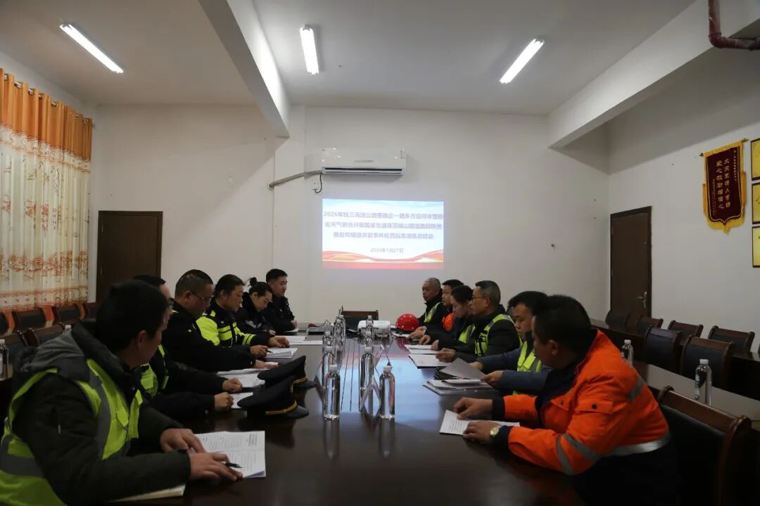 此次演练聚焦冬季山区高速桥梁多、隧道密、易结冰的特点展开。通过全链条、全过程的情景构建,检验了从预警发布、预案启动、力量投送到现场处置、恢复通行的完整流程。