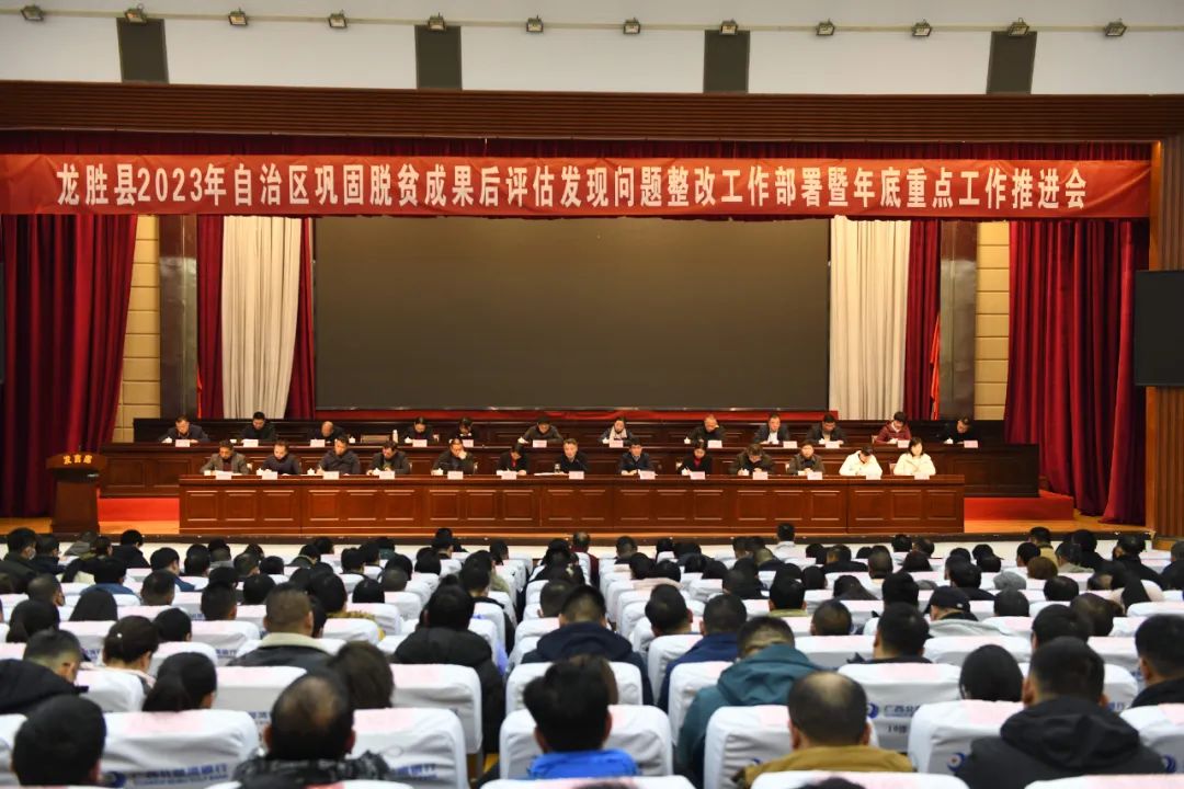 12月24日,龙胜召开2023年自治区巩固拓展脱贫攻坚成果后评估发现问题整改工作动员部署暨年底工作推进会,雷陈、黄强、粟海英、杨桂姬等在家的县四家班子领导,县直有关单位主要负责人,各(乡)镇全体班子成员,各行政村(社区)两委干部、第一书记、驻村工作队员参加会议。会议由县长黄强主持。
