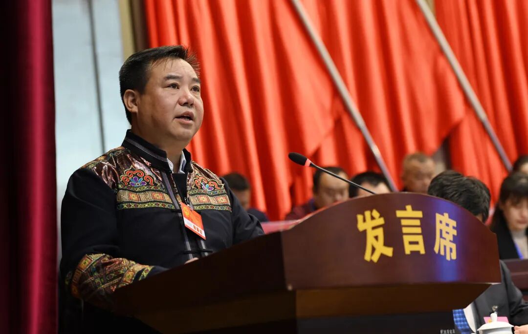 在热烈的掌声中,自治县县长蒙新宇代表自治县人民政府向大会作政府工作报告。