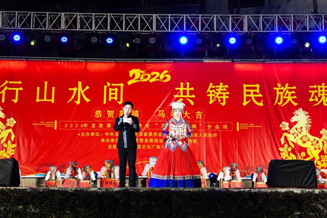 龙行山水间,共铸民族魂。2月11日,龙胜各族自治县大礼堂灯火辉煌、欢声雷动,2026年马年春节联欢晚会在这里隆重举行。全县各族儿女欢聚一堂,用最具民族特色的艺术形式,共贺马年新春,共叙团结情谊,共绘发展蓝图。蒙新宇,粟海英,杨桂姬等在家的自治县四家班子领导到会场观看演出。