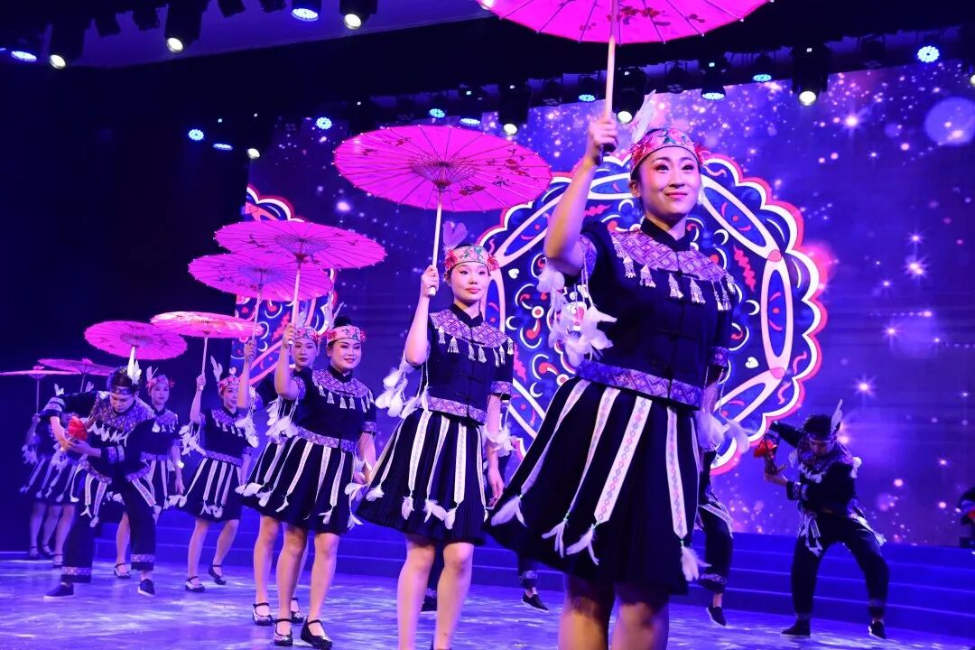 晚上八点,晚会在气势恢宏的开场舞中正式拉开帷幕。主会场内,绚丽的灯光与精美的舞台背景交相辉映;开场歌舞《福气马上来》高亢的歌声,劲爆的节奏,动感的舞姿,直接将晚会氛围拉满;《山路银河》、《盘帕·织梦》、《阿妹开门》、《美丽龙胜 仙境天堂》等苗瑶侗壮少数民族歌舞轮番精彩上演,给全县人民送上一道道曲艺大餐。