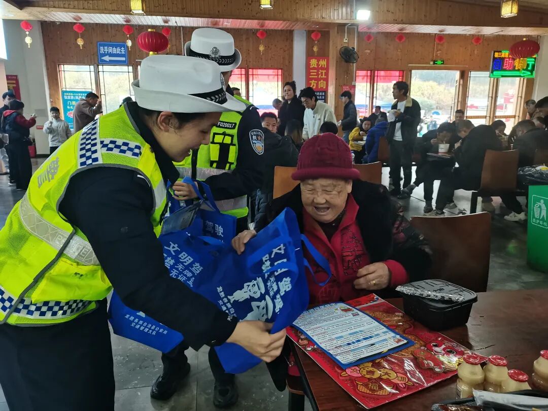 春运及春节假期期间,龙胜公安交管大队科学调配警力,在高速、国道、城区、农村全路段科学布防、坚守执勤,全力保障道路交通安全有序畅通。高速路段,紧盯G65包茂高速龙胜至三江段等车流密集路段,严查违法停车、占用应急车道等交通违法行为,引导车辆有序通行;国道路段,在321国道龙脊景区路段等重点点位设置执勤点,严查“三超一疲劳”等行为,同步开展交通志愿服务,及时为过往司乘人员提供帮助。