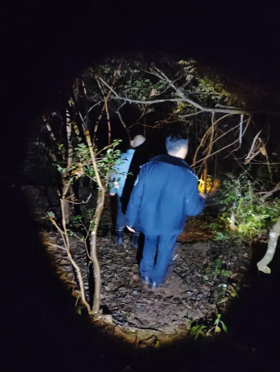 当晚山间突降小雨,气温骤降,湿滑陡峭的山路被浓雾笼罩,视线仅能看清手电微光范围,每一步前行都充满艰难。搜救人员不惧严寒与险阻,彻夜不间断搜寻,历经十余小时的艰苦奋战,终于在次日上午 10 时许找到走失老人。