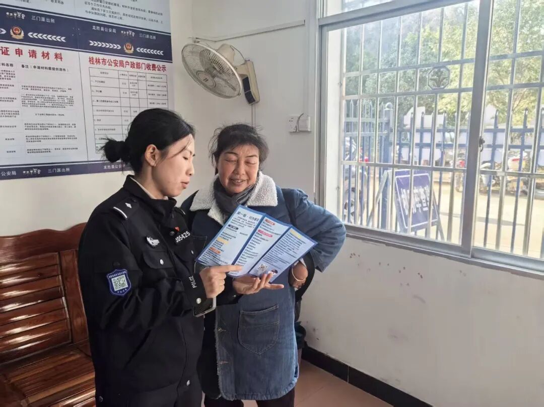 龙胜公安始终坚持以人民为中心的发展思想,春节期间窗口服务不打烊、一线服务暖人心,用实际行动解决群众急难愁盼问题。户籍、出入境等窗口单位开设新春便民绿色通道,安排专人值守,提供预约办理、延时服务,高效为群众办理身份证、户口迁移、出入境证件等业务,用便捷、贴心的服务让群众感受公安温度。2026年春节期间,龙胜公安为返乡群众提供紧急办证服务,共接待群众20余人次。