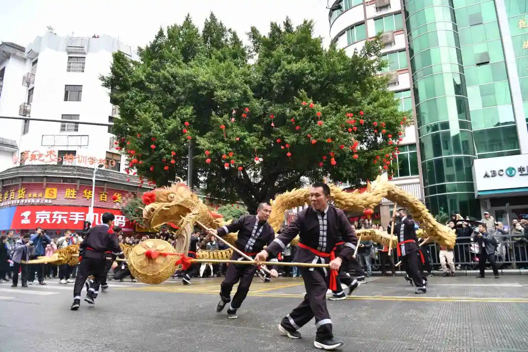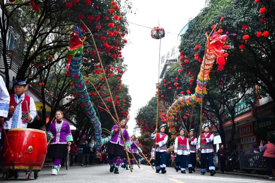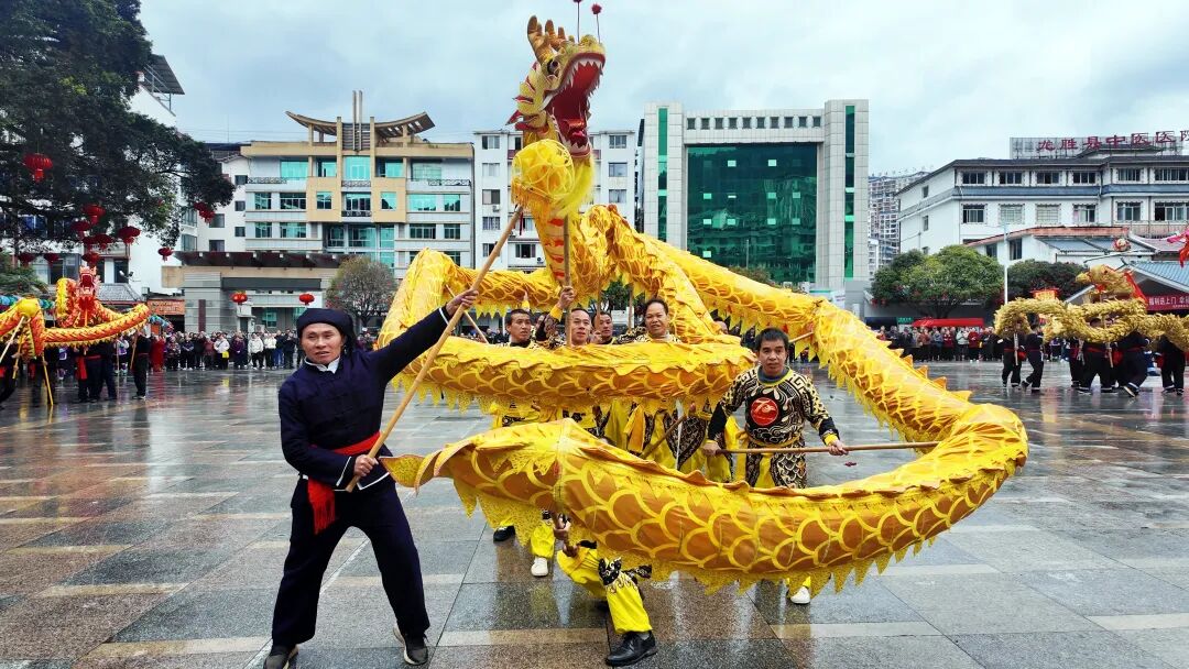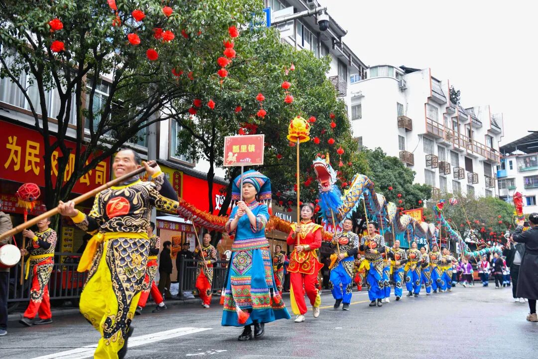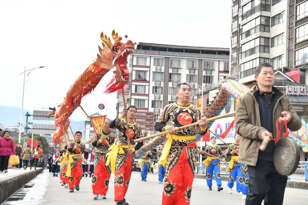 激昂的锣鼓声中,一条威武的祥龙正从百湾村古寨腾跃而出,沿着青石板路盘旋舞动,它承载着这片土地数百年的记忆与祝福。