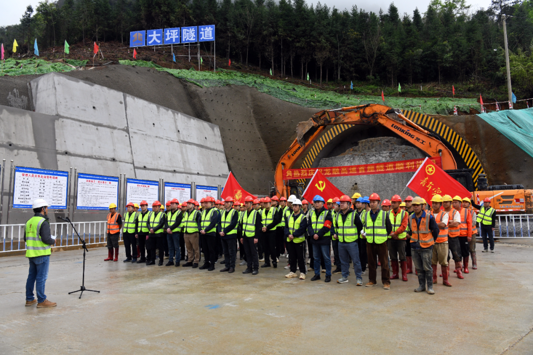 3 月 29 日,广西龙胜至融安高速公路三分部大坪隧道进洞施工仪式隆重举行,现场机械整装,一派热火朝天的建设景象。这是龙融高速全线首座正式进洞施工的隧道,标志着项目建设全面转入隧道主体攻坚阶段。自治县委常委、常务副县长蒋文明,县发改局、龙融高速龙胜县指挥部、三门镇党委政府相关领导,以及项目施工、建设、监理、设计单位代表和一线建设者齐聚现场,共同见证这一重要时刻。