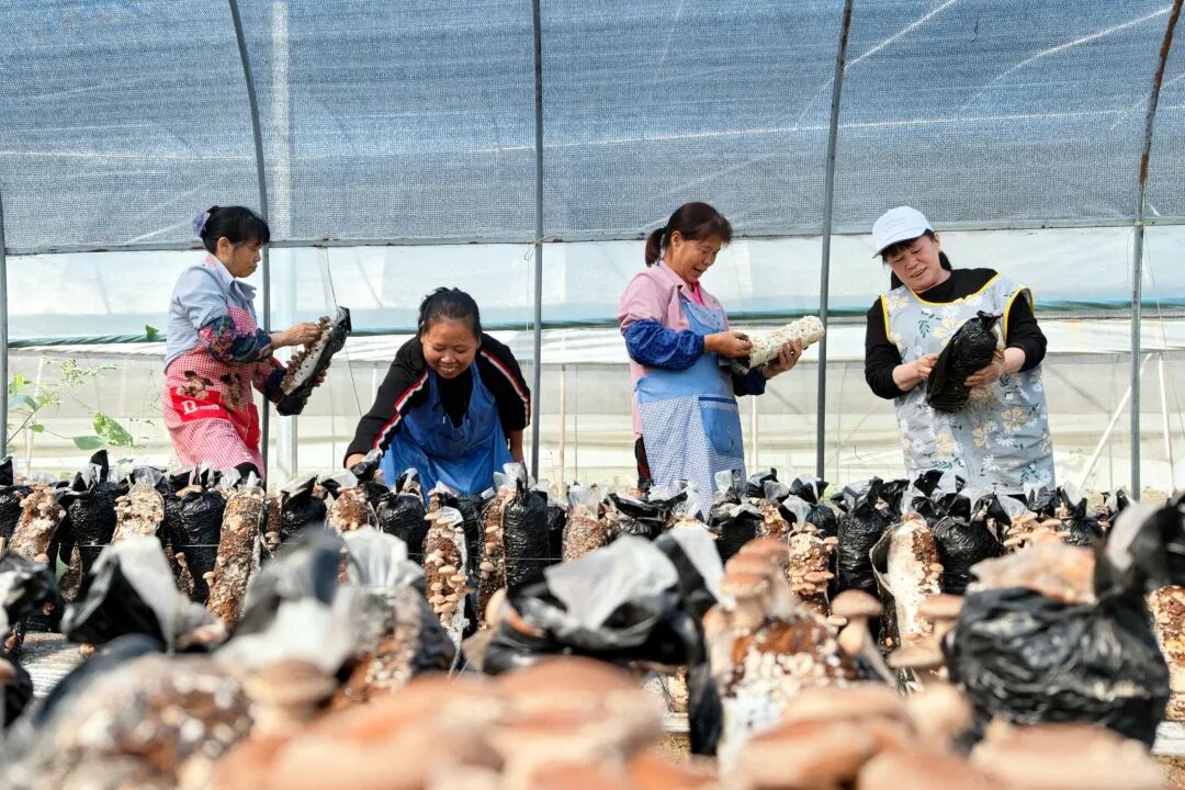 在瓢里镇六漫村龙胜旺桂食品有限公司食用菌种植基地,一簇簇肉质饱满的香菇迎来集中采收期。工人们熟练地采摘、分拣,欢声笑语不绝于耳。“老板在这里办厂对我们好处太大了,既能赚钱又开心,和姐妹们天天一起做事,再也不用闷在家里了。”工人杨艳娟朴实的话语,道出了不少当地村民在家门口就业的满足感。