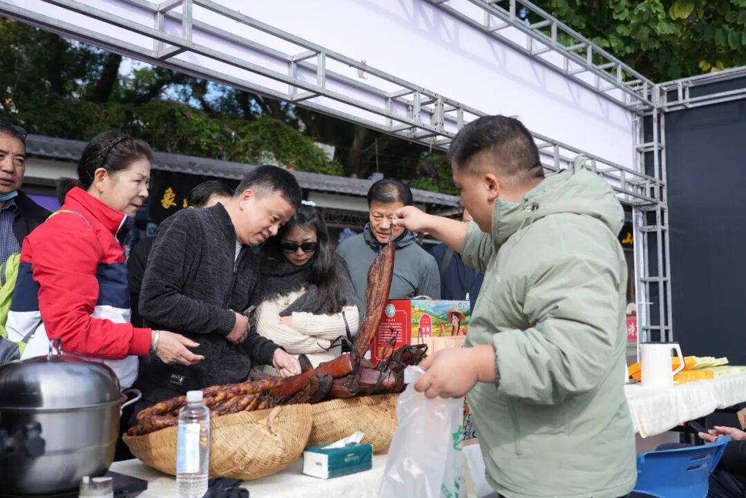 与精彩演出相呼应的,是同样人气高涨的农文旅产品展销区。现场设置了专门展位,集中展示了龙胜腊味、龙脊茶叶、罗汉果、龙脊大米等一系列优质农产品,以及融合了侗、瑶等民族元素的草编、刺绣等精美文创产品。这些展品不仅体现了龙胜特色产业的发展成果,也让游客在欣赏文化之余,能近距离了解并选购地道的“龙胜好物”。