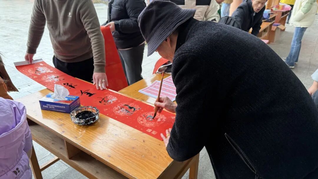 除了专业的普法宣讲和温馨的健康服务,活动现场还洋溢着浓浓的年味与温情。5位来自新寨村的书法爱好者现场挥毫泼墨,免费为群众书写春联、赠送福字,一副副寓意吉祥的春联在笔墨流转中传递着新春祝福。手捧春联的村民舒先生表示:“既学了法,又领了春联,这样的活动贴心!”同步开展的“邻里守望促和谐”活动,进一步促进了各村民众间的友好互动,密切了邻里关系,凝聚了社会共识,营造出温馨、和睦、团结的节日氛围。