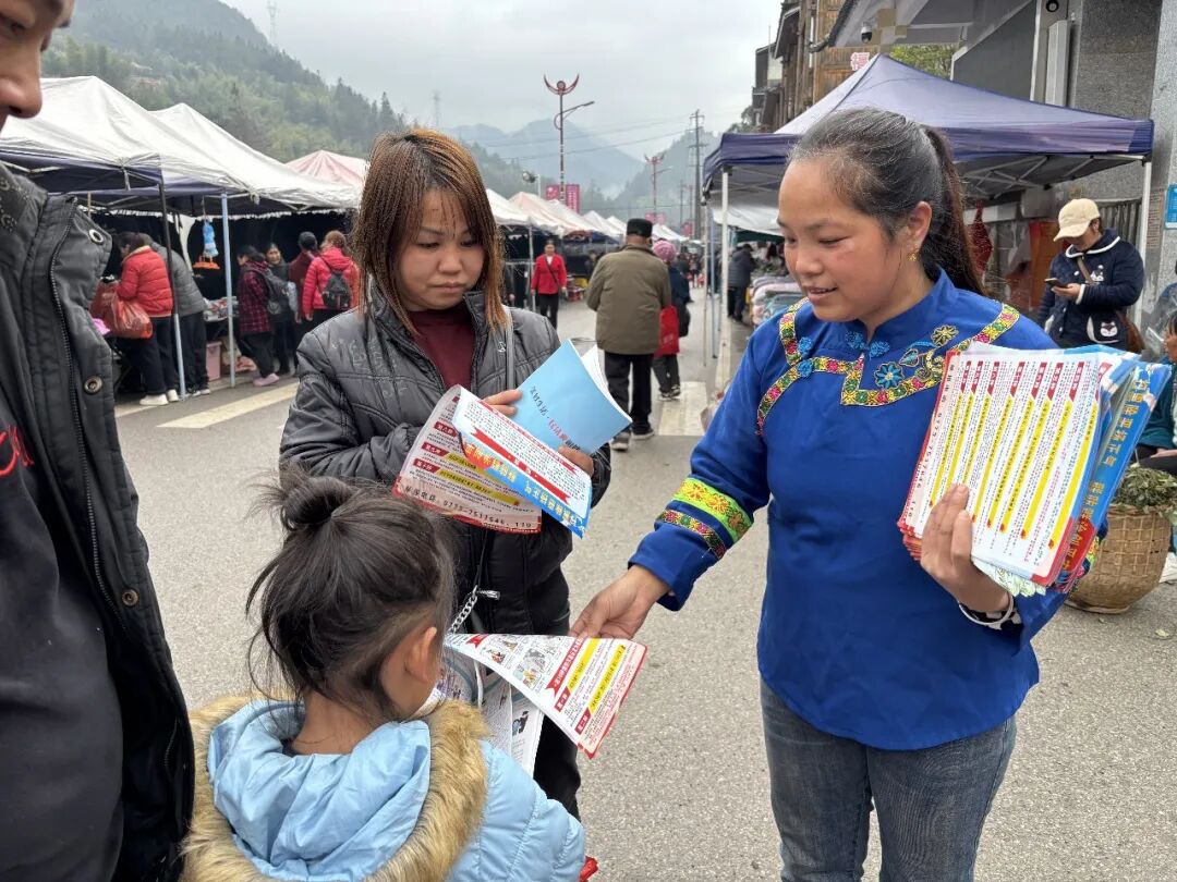 “双语普法”是伟江乡针对苗族聚居特点、提升基层治理效能的关键举措。当天,由13名干部职工、民警、司法所工作人员及治安积极分子组成的3支“苗+汉”双语宣传队,深入圩市街头,用苗族群众听得懂、能理解的语言,面对面宣讲习近平法治思想与民法典基本原则。宣传内容紧扣民生实际,重点聚焦婚姻家庭、赡养继承、教育医疗、财产纠纷、土地承包、征地拆迁等与群众生产生活紧密相连的法律知识,让法治精神融入日常,引导群众树立“遇事找法、解决问题靠法、化解纠纷用法”的法治观念,为欢度新春佳节筑牢法治根基。“用苗话讲法,听得懂,记得住!”一位来自洋湾村的苗族大爷笑着说道。