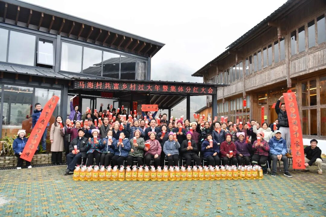 “为了更好地整合资源,让村民共享发展成果,我们村成立了龙马文化旅游有限公司,主要经营民宿住宿、餐饮、露营、研学等项目。”韦浩宇既是马海村村民,也是龙马文化旅游有限公司董事长。“公司运营以来,村民积极参与,主动配合,实现了全员受益,今年公司首次实现盈利,我们拿出部分利润给村民分红,也是村里的首次分红。这次分红,是我们共富乡村建设迈出的坚实一步。”
