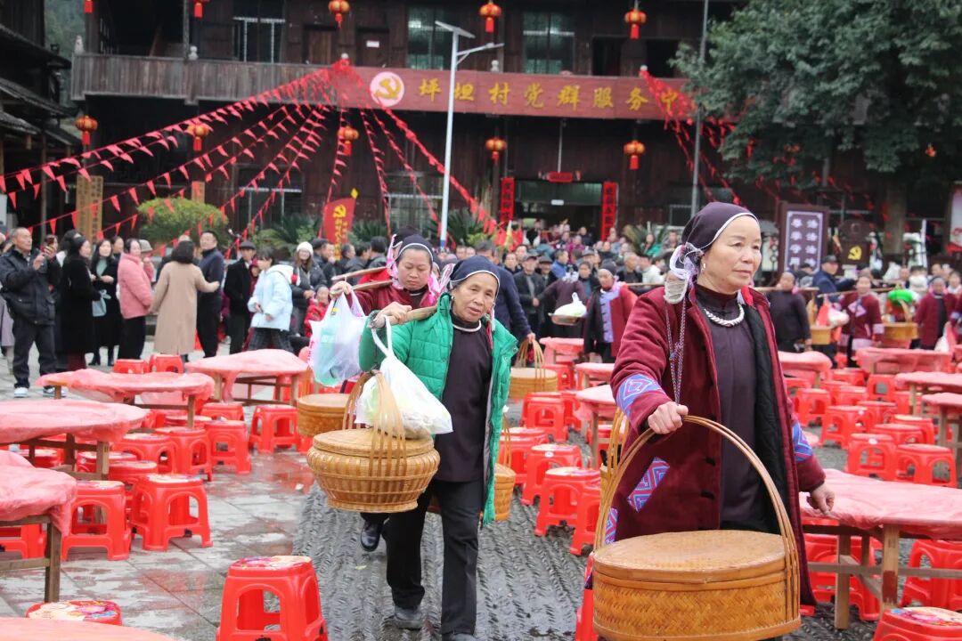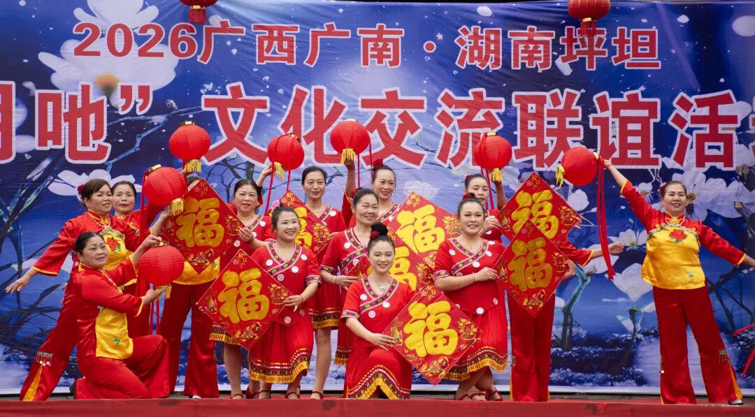 坪坦村的村民们还备好了醇香米酒与特色佳肴,两村乡亲围坐一堂共享百家宴,举杯话情谊、围桌叙家常,在浓浓的烟火气中畅叙民族深情,共话文化传承,让桂湘两地的民族团结之花越开越艳。