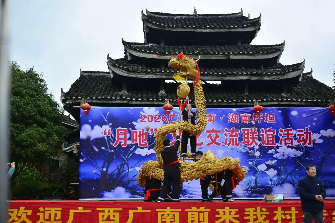 2月17日,广西龙胜各族自治县平等镇广南村的村民们,满怀热忱与祝福来到湖南省通道侗族自治县坪坦乡坪坦村开展“月吔”民俗交流活动,进一步深化桂湘两地村寨的文化互动与情感沟通,共促民族文化传承发展。