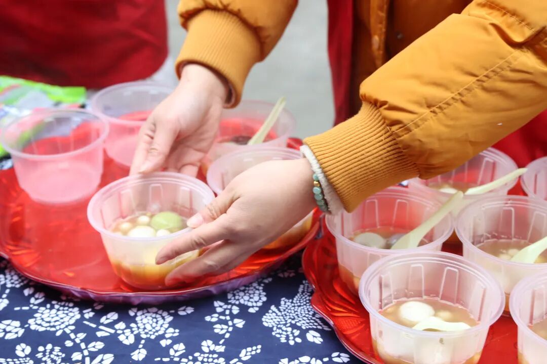 活动现场暖意融融,志愿者们分工协作、有条不紊,烧水、煮汤圆、分装、派送……一颗颗圆润饱满的汤圆在锅中翻滚,香甜的气息弥漫在空气中,传递着节日的喜庆与温馨。