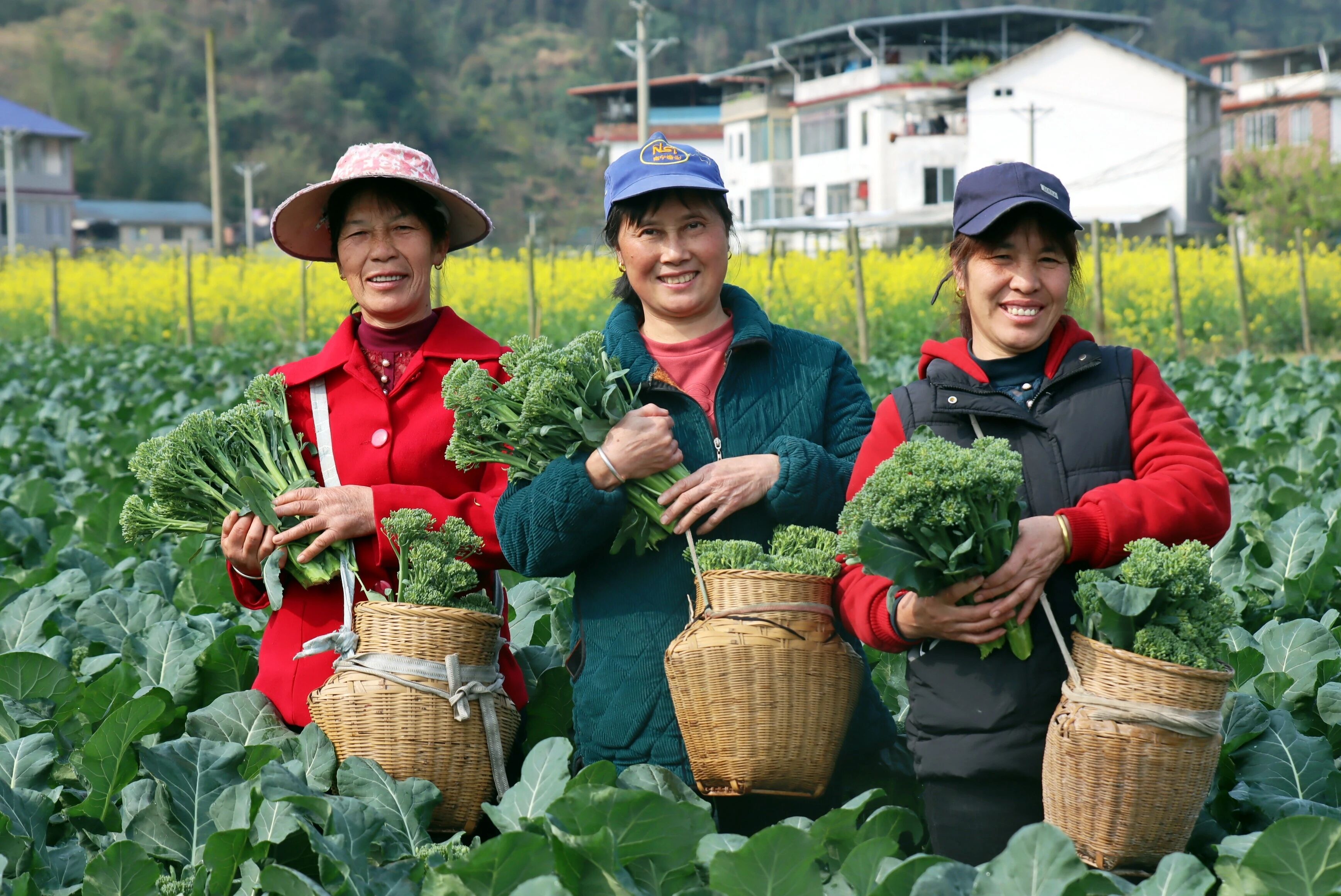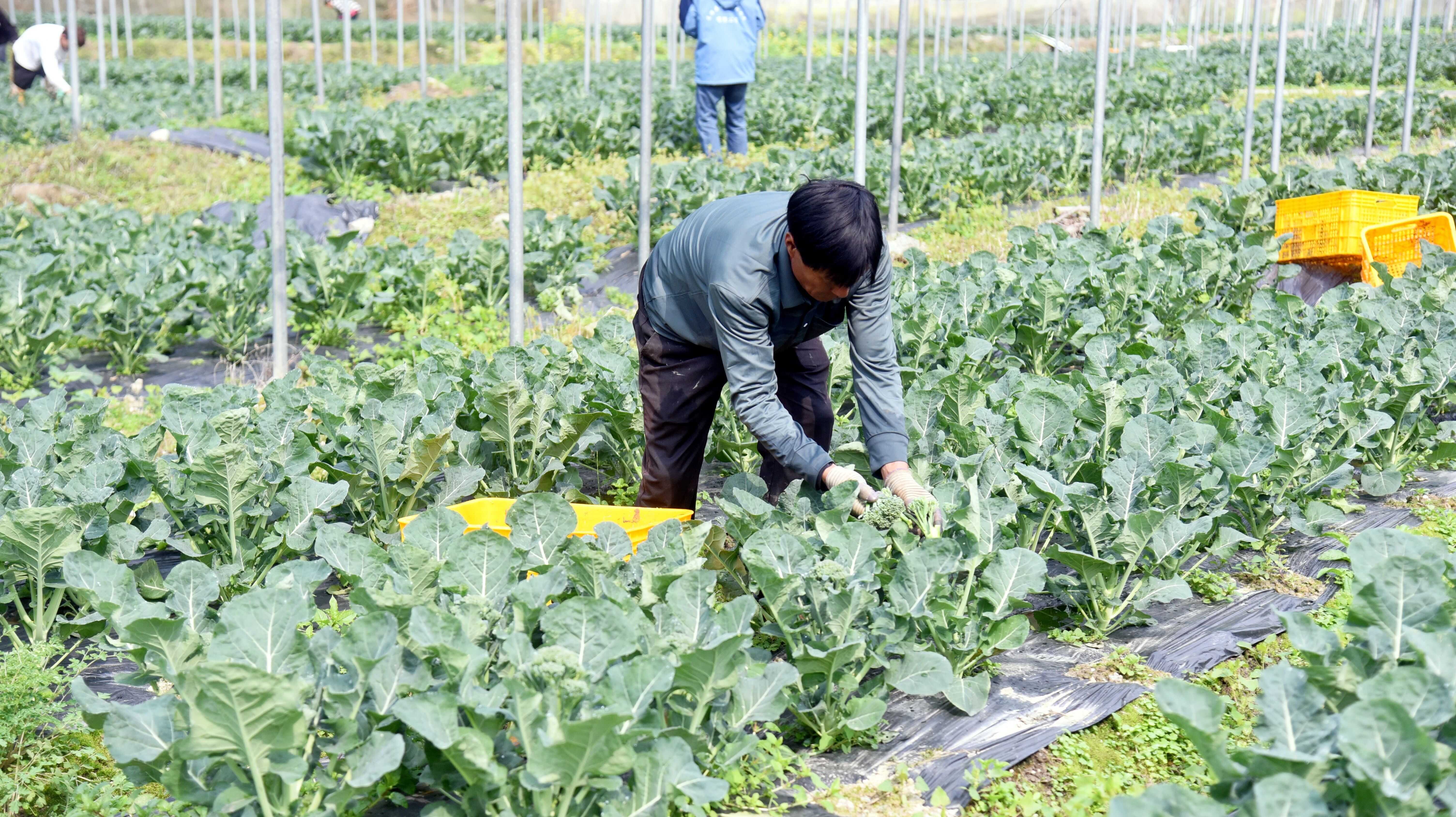 春回大地农事忙。近日,在龙胜各族自治县瓢里镇平岭村、马堤乡马堤村的田间地头里,一颗颗翠绿饱满的西兰苔正被村民们熟练地采收,现场一派繁忙景象。